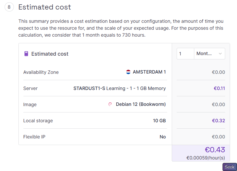 这样的话一个月的成本是0.43欧元,如果你想使用一个相对稳定的机器,这个价格还是非常不错的,可用搭建一些不依赖IPV4的服务