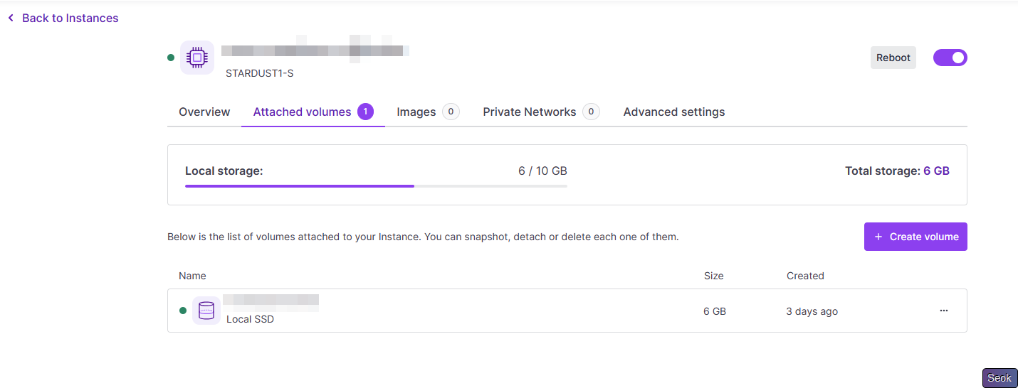 随后关机恢复快照,选择Local SSD,恢复快照后,将新建的Local SSD挂载到你的Instance下,随后即可删除之前创建的Block Volume